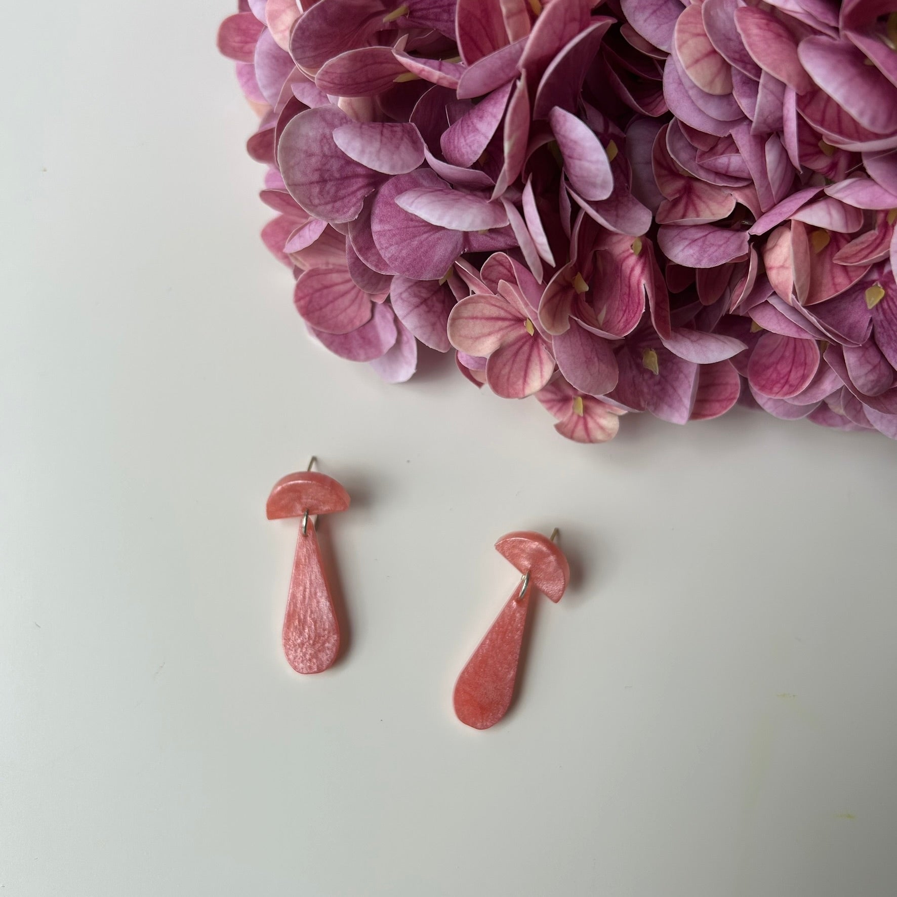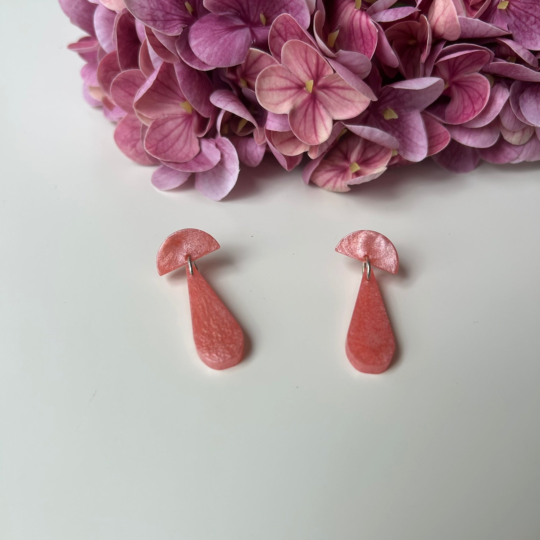 🌸 Tout en douceur, ces boucles associent une demi-lune à une goutte allongée, dans une jolie rose nacré aux reflets délicats.