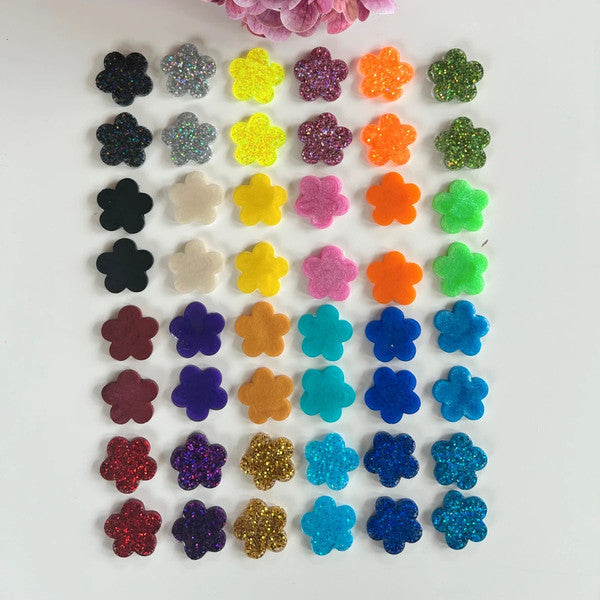 🌸 Craquez pour la simplicité joyeuse de ces boucles d'oreilles en forme de petites fleurs, incrustées de paillettes scintillantes ou d'une jolie couleur unie.