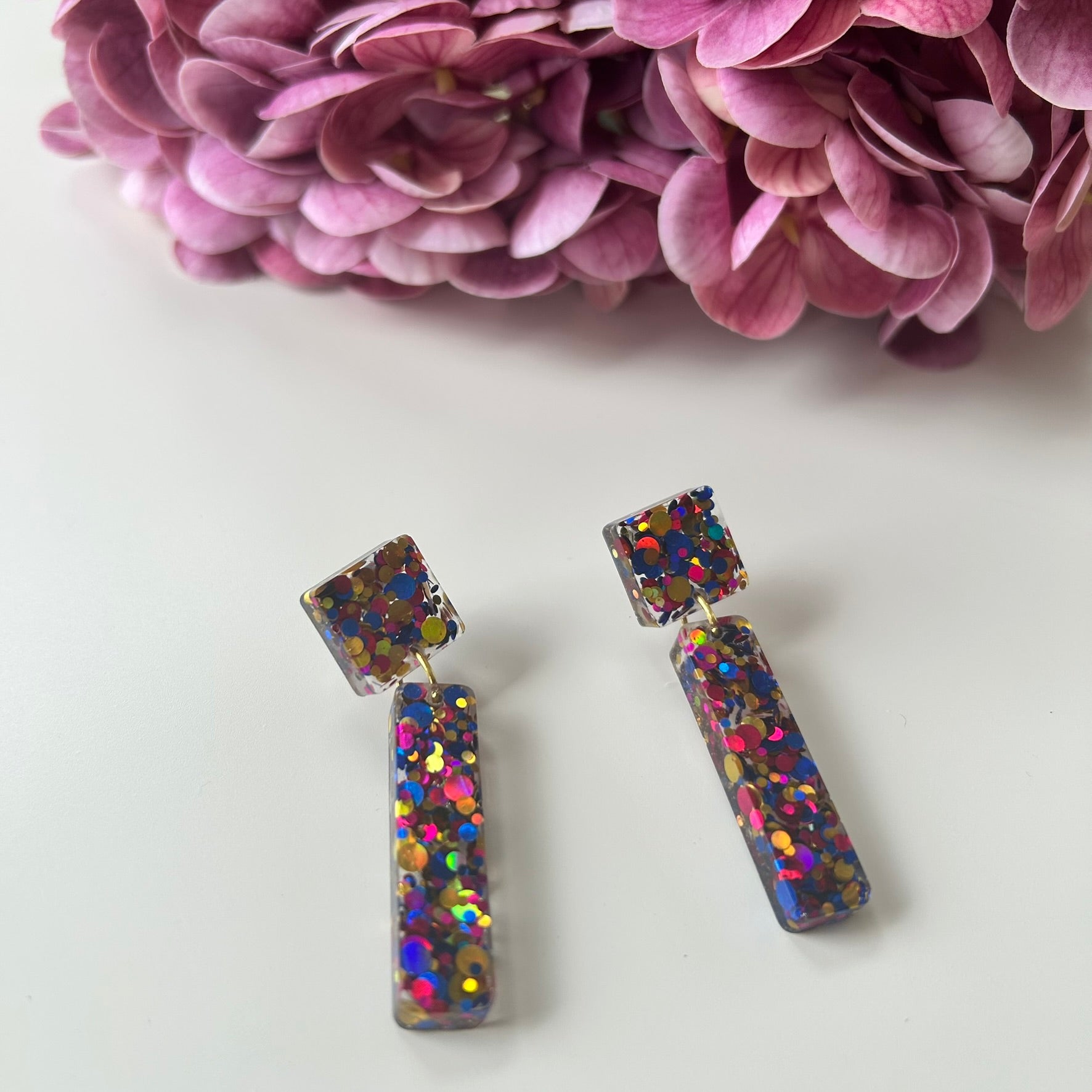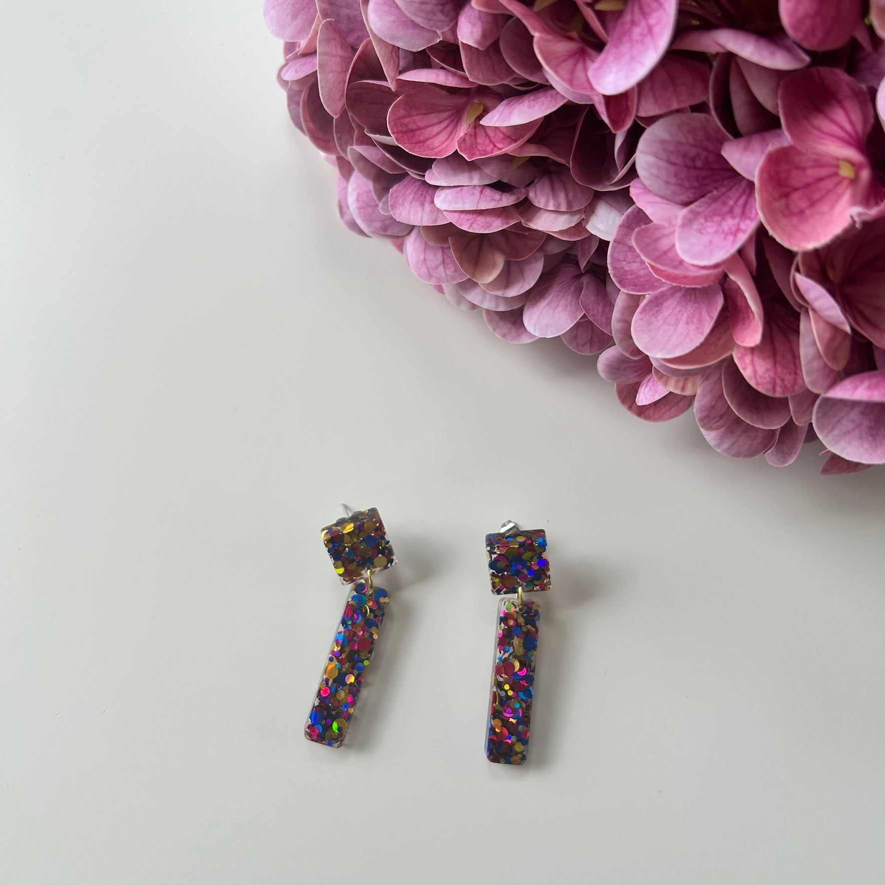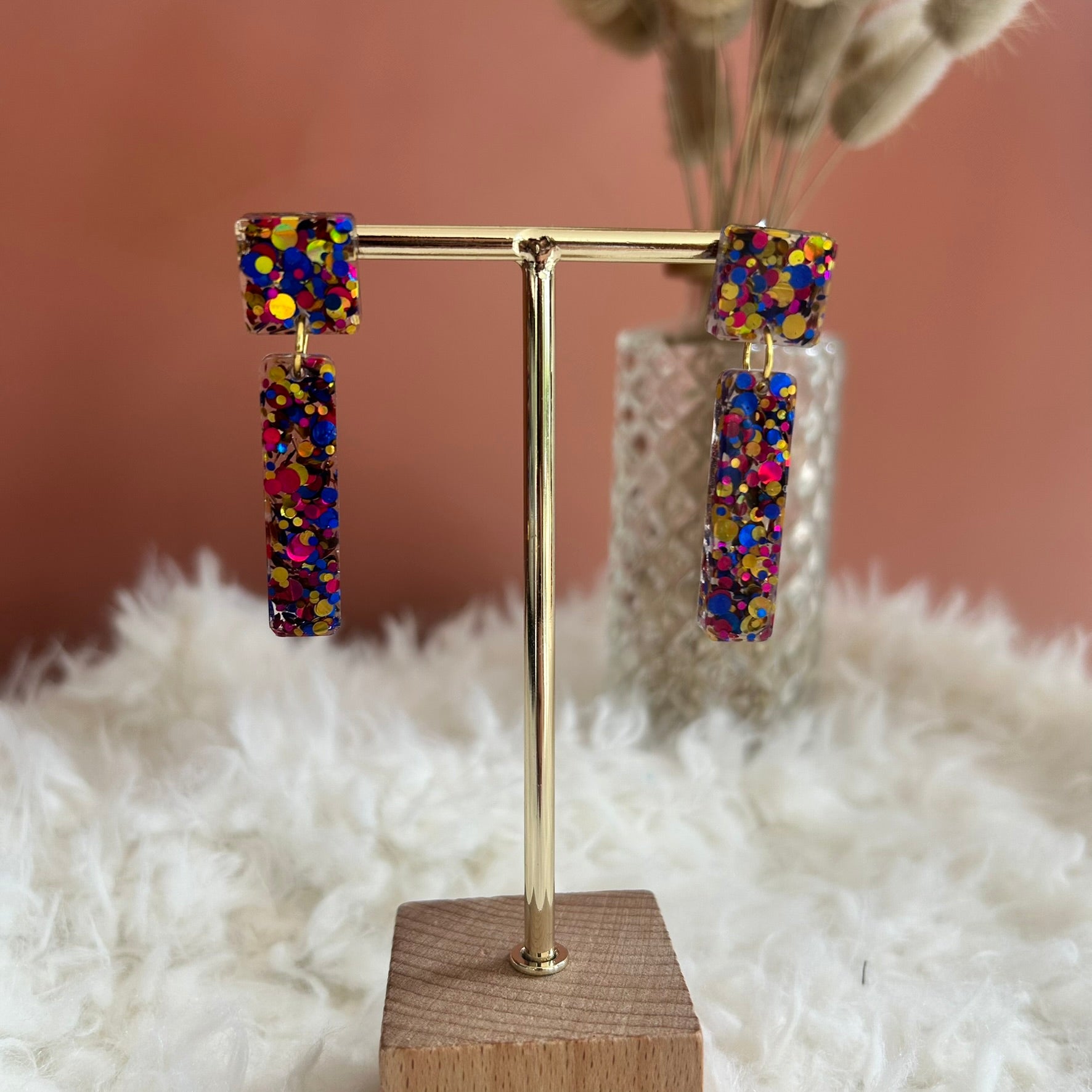 🌟 Audacieuses et lumineuses, les boucles Héra séduisent par leur design géométrique et leur finition pailletée éclatante. L'association d'un carré et d'un rectangle allongé crée une ligne élégante et moderne, parfaite pour illuminer vos tenues de jour comme de soirée.