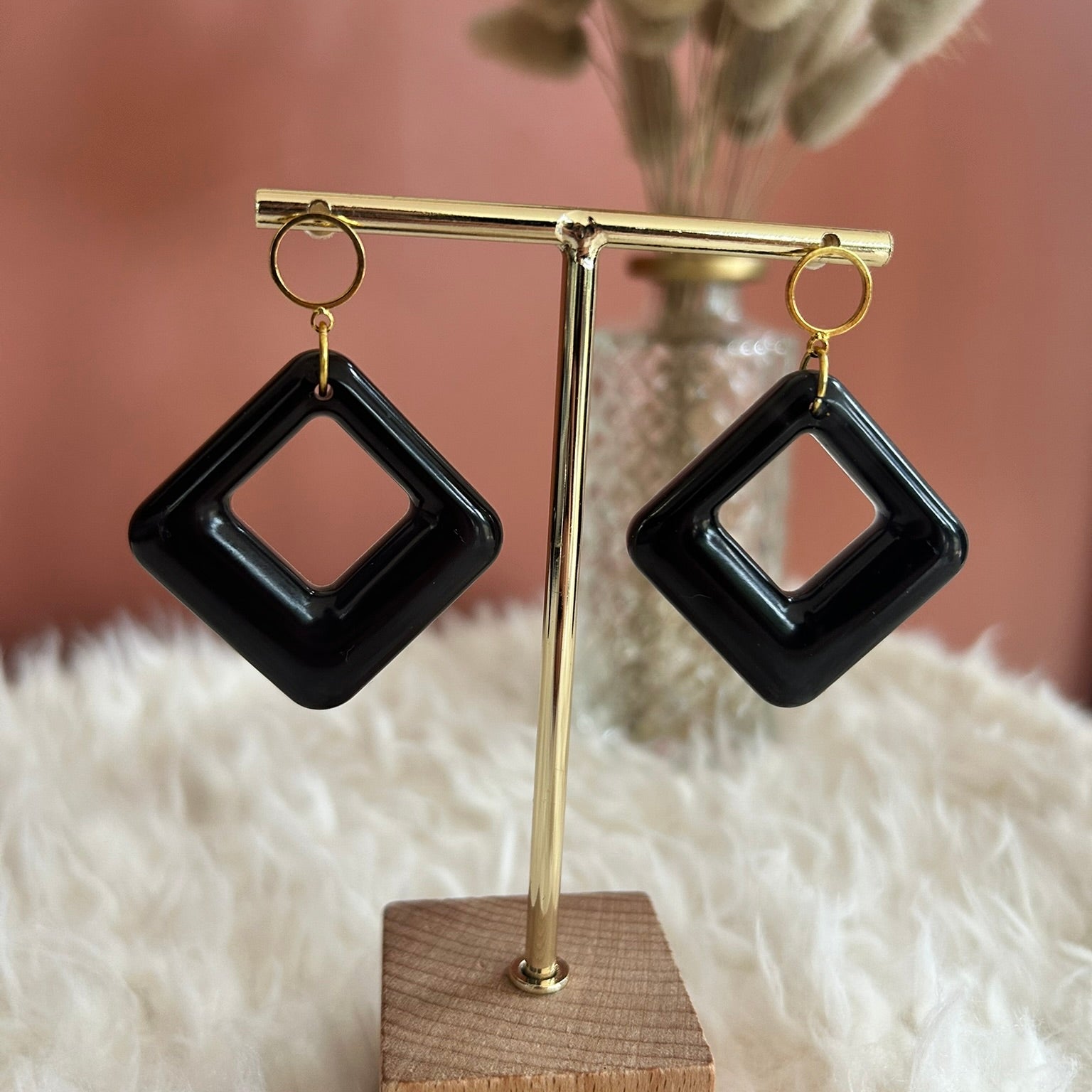 ⬛ Les boucles Nyx séduisent par leur forme carrée ajourée suspendue à un anneau délicat. Leur design géométrique minimaliste apporte une touche moderne et élégante à toutes vos tenues.